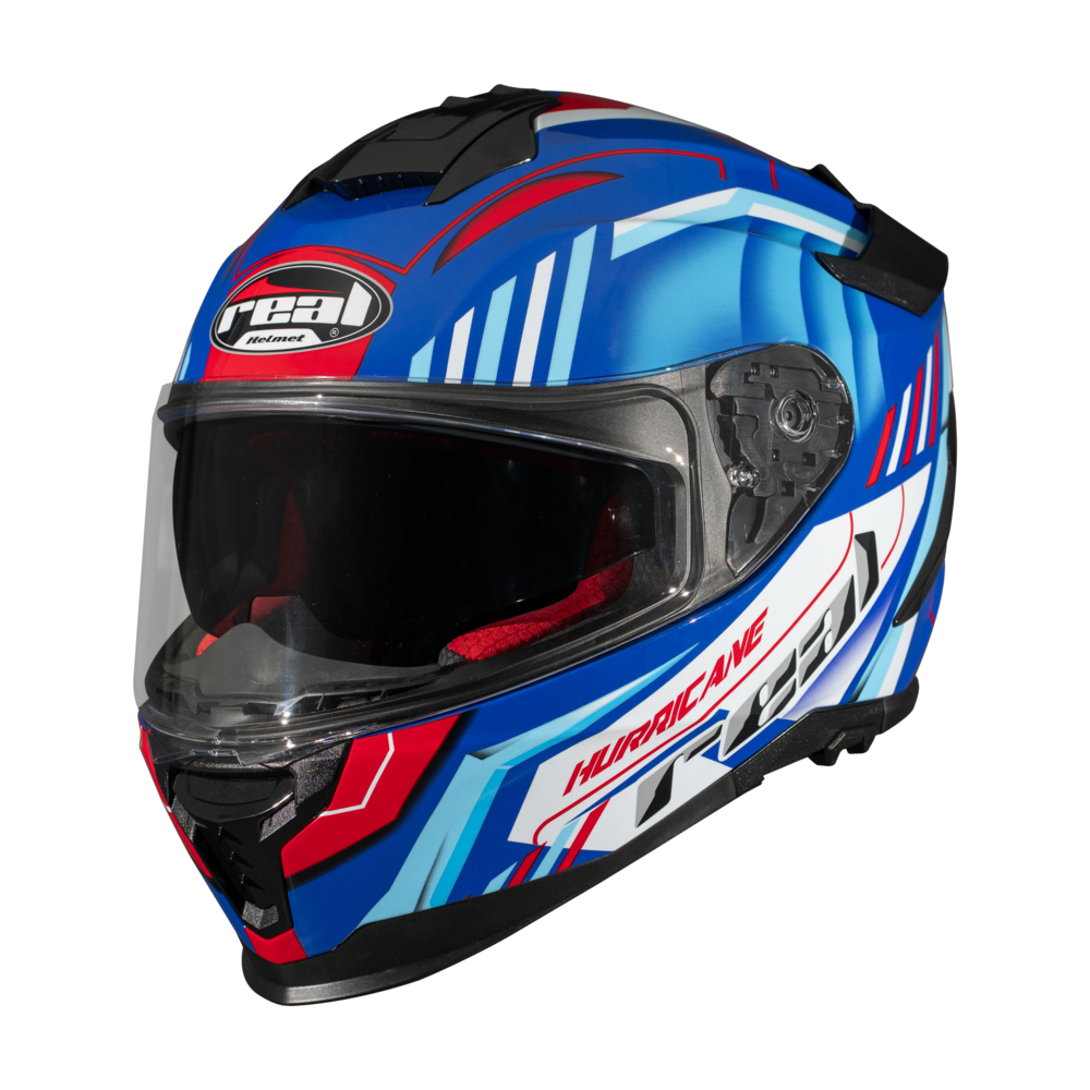 หมวกกันน็อค Real รุ่น Hurricane Kona น้ำเงิน-ขาว แบบสปอร์ตทัวริ่ง ชิลด์หน้าสีใส มีแว่นกันแดดด้านใน